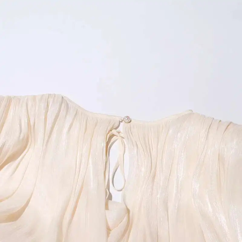 TWOTWINSTYLE Solid Blouse Mini Dresses For Women V Neck Long Sleeve Spliced Lace Up.